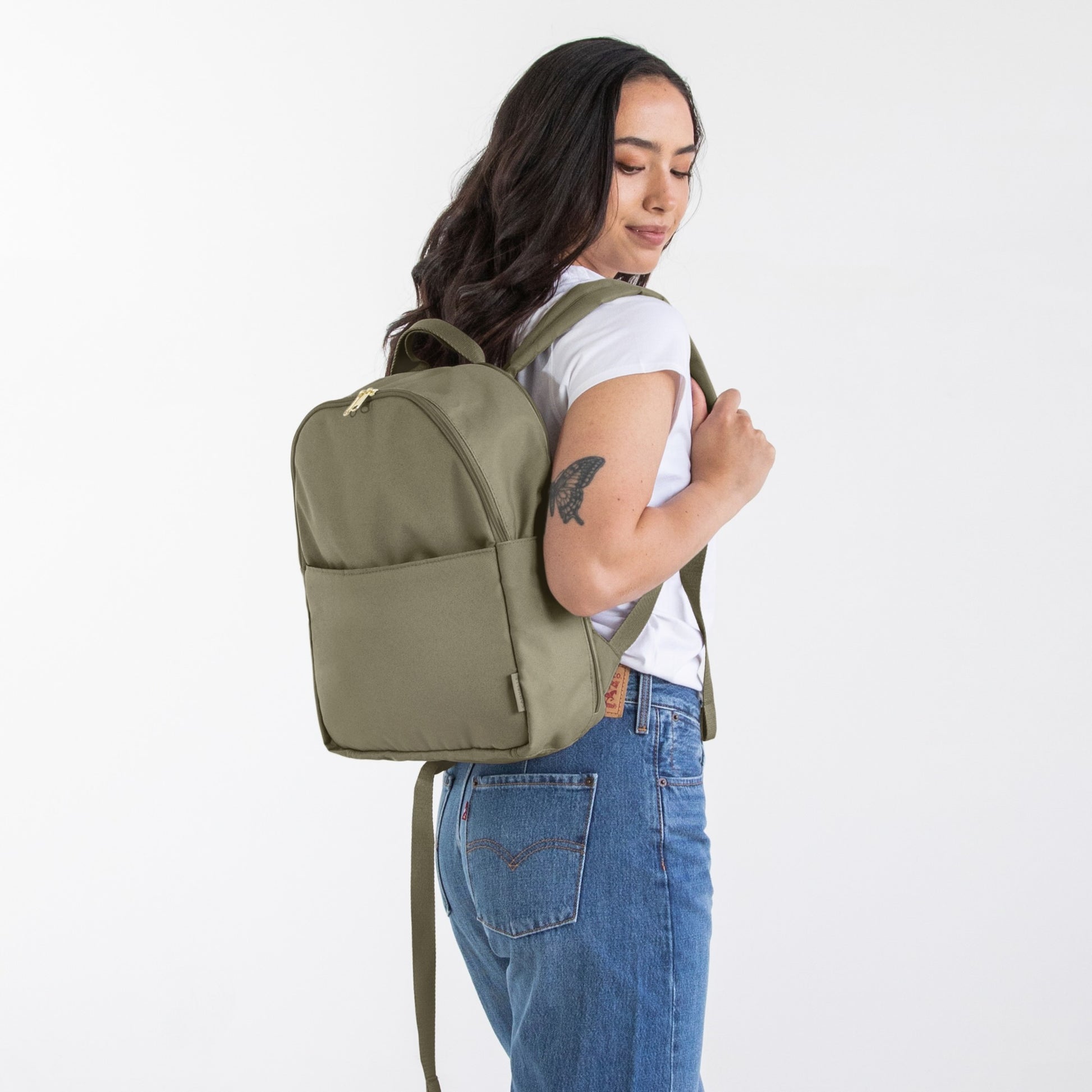 I really wanted to like this backpack after loving my shoulder bag, but it was a huge miss. The backpack straps really need additional padding, especially if it's going to offer a laptop sleeve and compete with other laptop backpacks on the market (at this price point!!!). They immediately feel cheap and unsupportive out of the packaging, so I wouldn't even want to try hauling work gear on a commute. I was additionally surprised they don't use the lovely mesh that is on the back of the sling bags on the back of the backpack to prevent back sweat. Finally, while I love the waterproof material in theory, it really gives a backpack an odd structure.