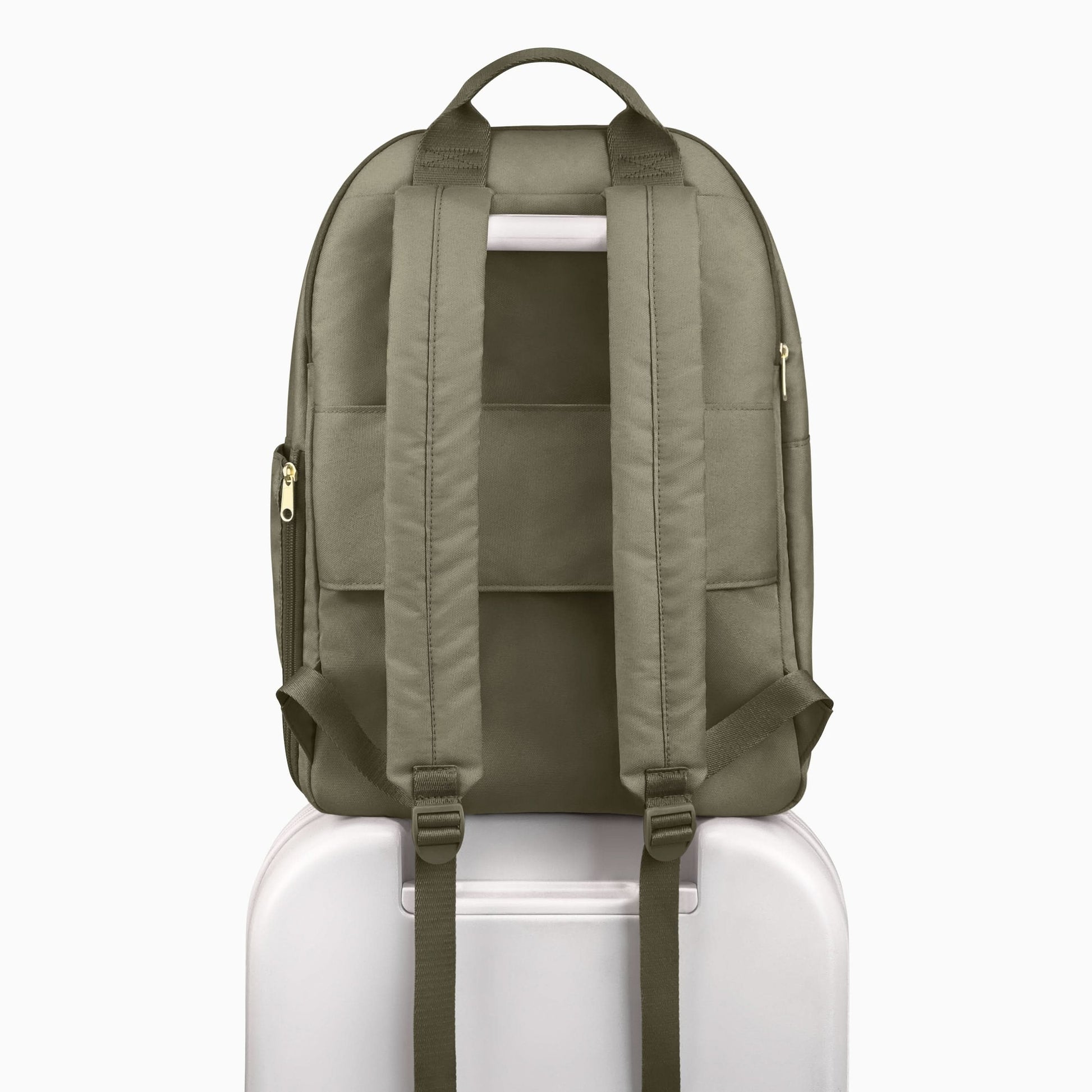 Smart details like a water-resistant lining, air-cushioned straps, and just-right pockets keep your essentials organized without the bulk. The Medium and Large both have a water bottle pocket, internal beverage pocket, trolley sleeve, padded laptop sleeve, and slip phone pocket to make travel days easier.