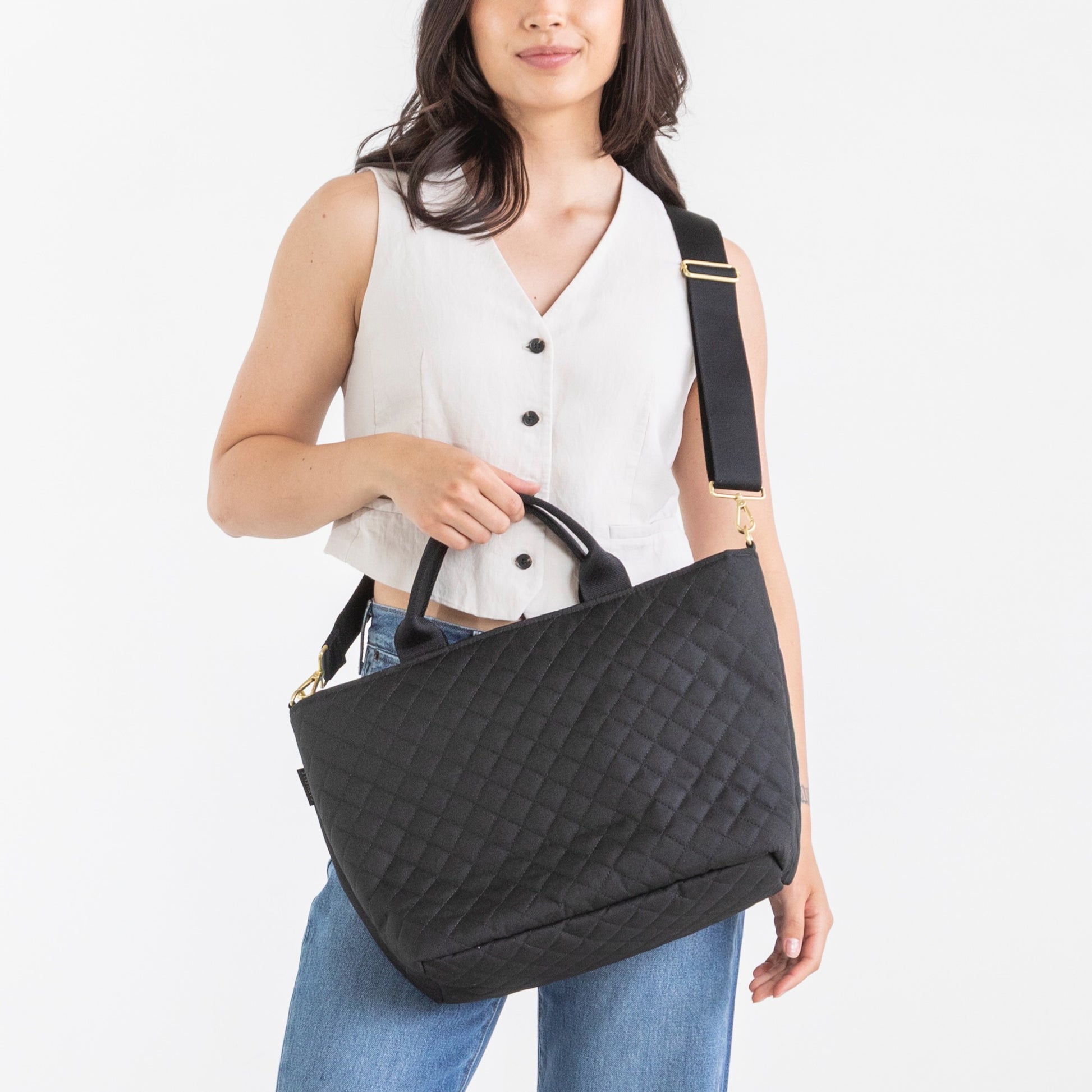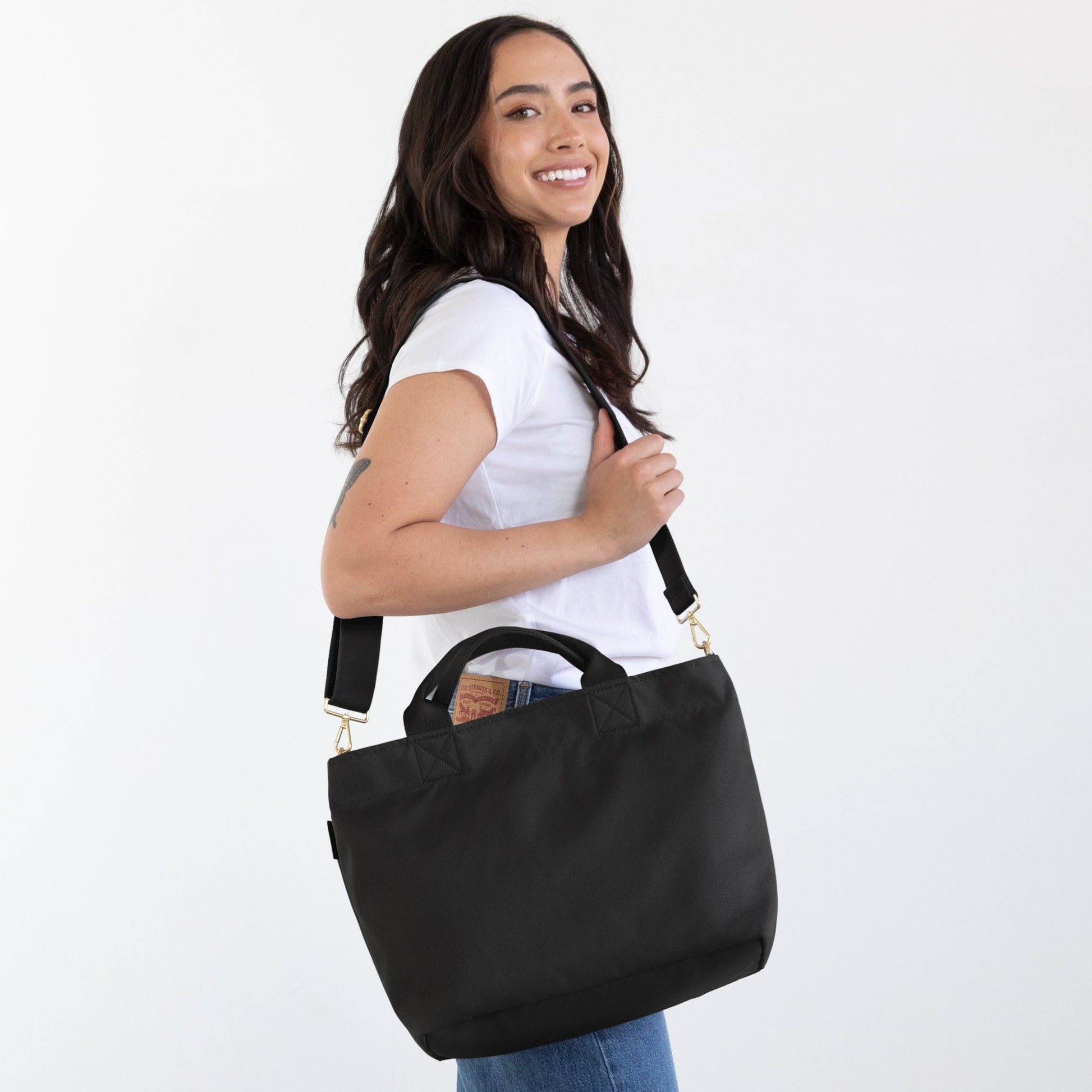 Structured on the outside, organized on the inside, with thoughtful touches like a hidden phone pocket tucked right into the rim—no more bottom-of-the-bag digging. Carry it your way with comfy handles or the adjustable crossbody strap. Lightweight but roomy, it fits more than you'd expect without feeling bulky.