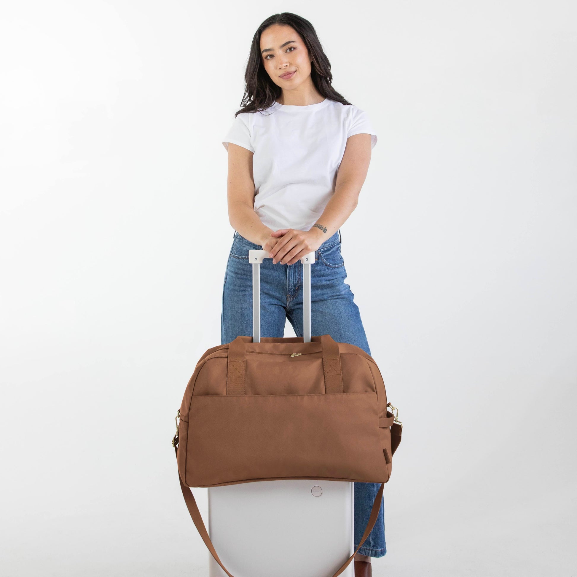 It’s loaded with smart details: a trolley sleeve, padded laptop sleeve, slip phone pocket, key clip, two built-in mesh packing cubes, an exterior side pocket, and interior netting to keep the little things sorted. Carry it your way with side handles, shoulder straps, or the adjustable crossbody strap.