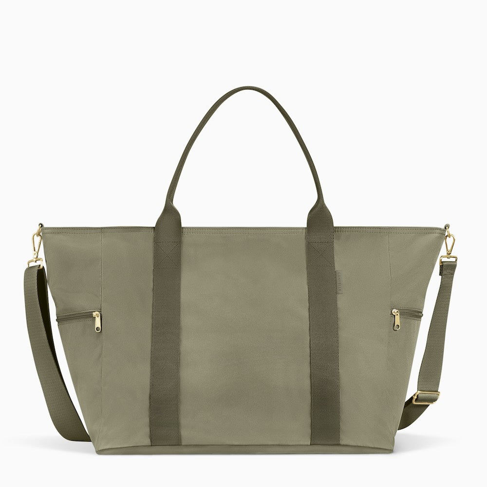 I really like the tan color and the organization of this duffle. Would love a tan quilted version.