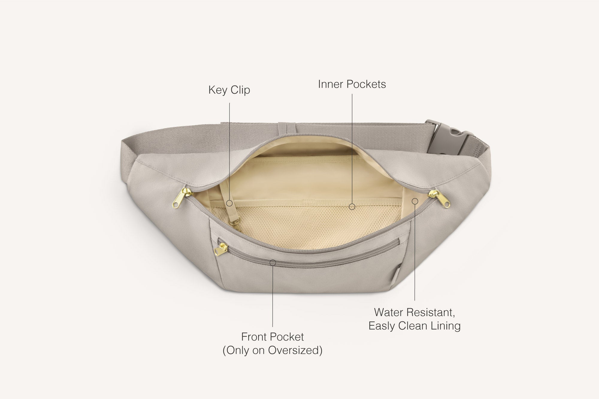 Designed with a side-release buckle strap for quick on-and-off, plus smart features like a rear water-resistant phone pocket and built-in key clip to keep essentials secure. Available in Original and Oversized sizes, depending on how much you like to pack.