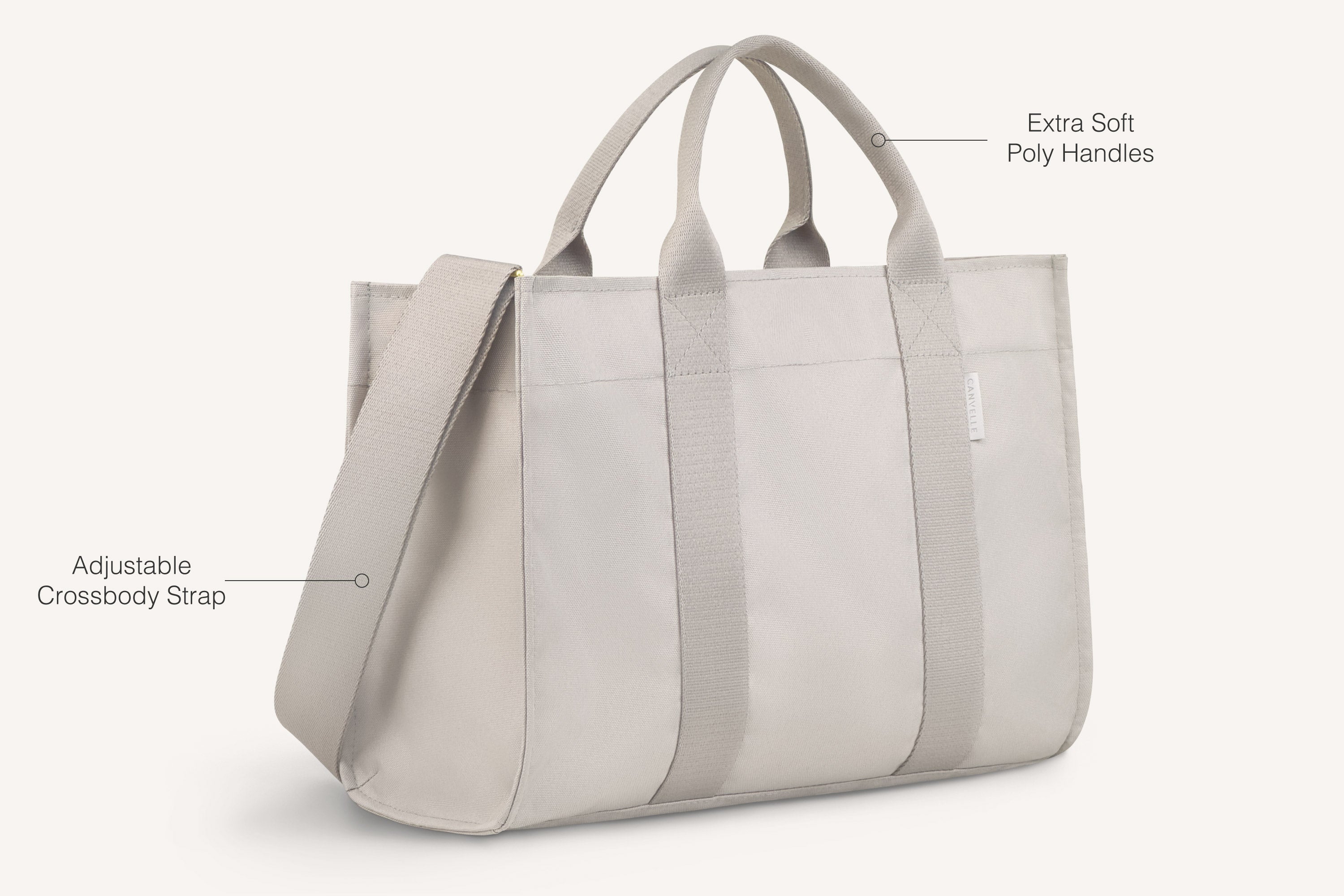 It’s sturdy enough to hold its shape but lightweight enough for everyday carry, with smart features like a built-in phone pocket, roomy compartments, and a crossbody strap for hands-free carry. Lightweight, durable, and machine-washable for all the messy moments in between.