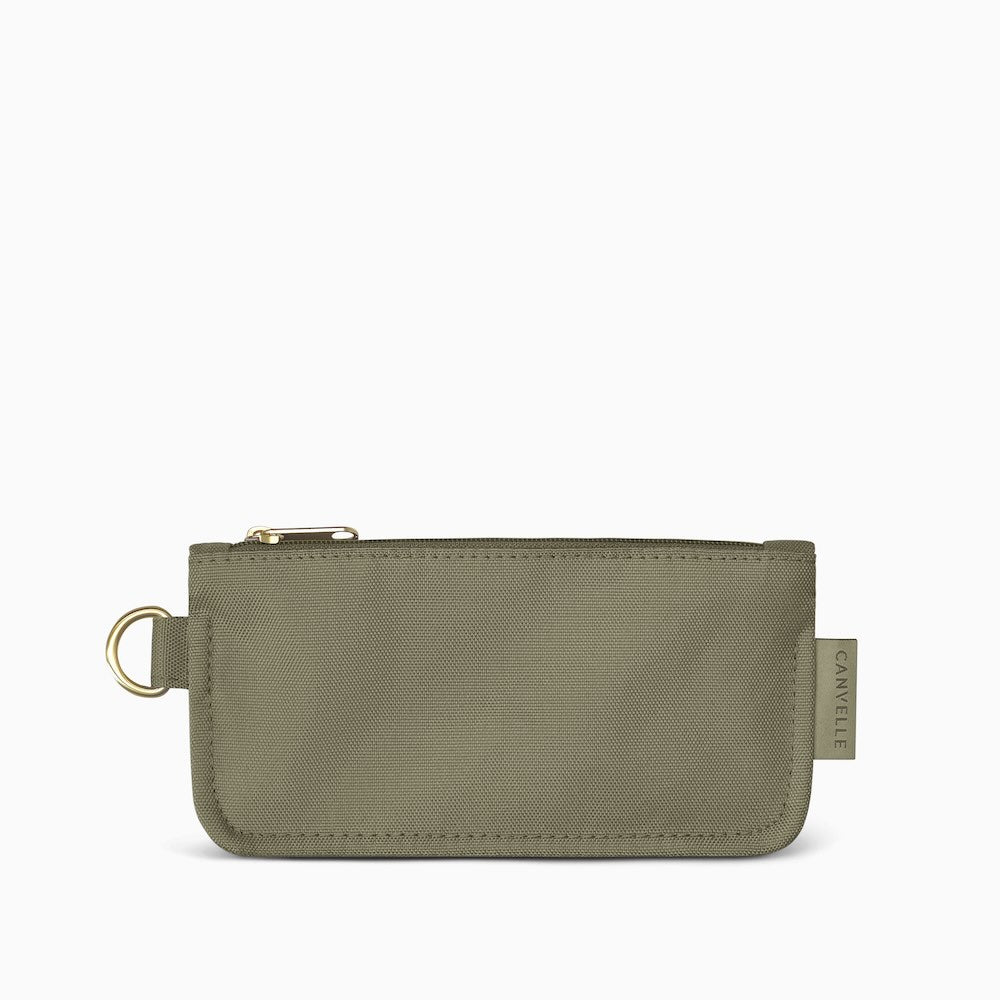 Each pouch has water-resistant lining and a D-ring to attach to the key clips in our other bags for extra easy-access storage. The Flat Pouch comes in three sizes to fit everything you need.