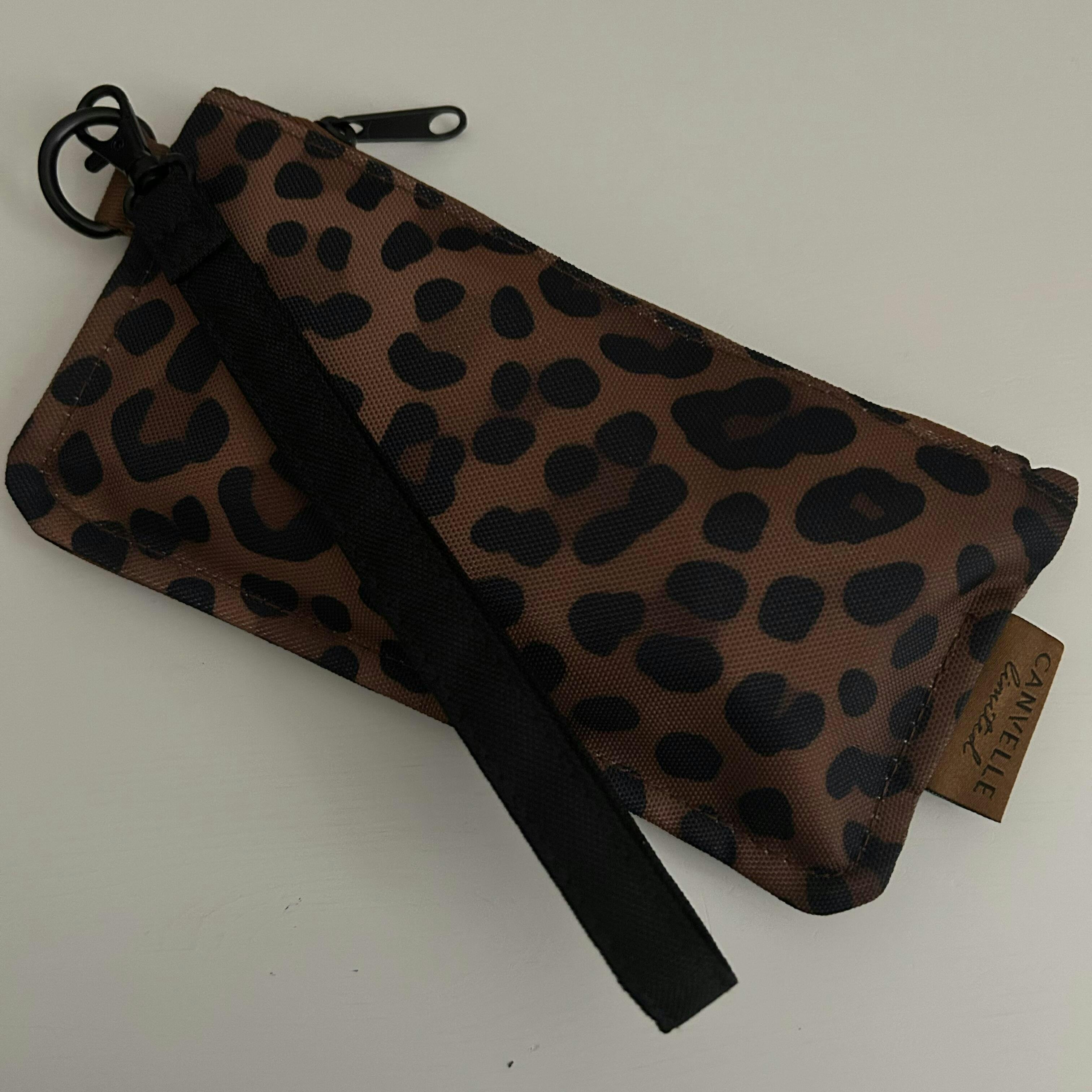 I love my small flat pouch! I can use it to store small everyday items and also as a flat pen pouch. The leopard print is beautiful. I purchased a wrist strap too. Love the patterned design!