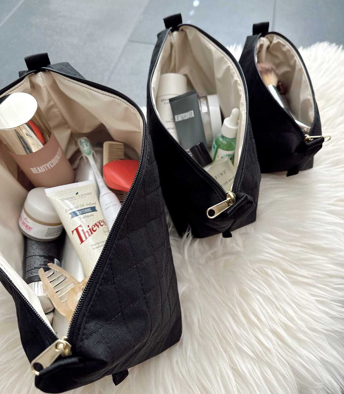 Made for your get-ready gear — The Toiletry Pouches pack, zip, and go. Perfect for travel days, gym bags, or tossing into your tote for everyday essentials.